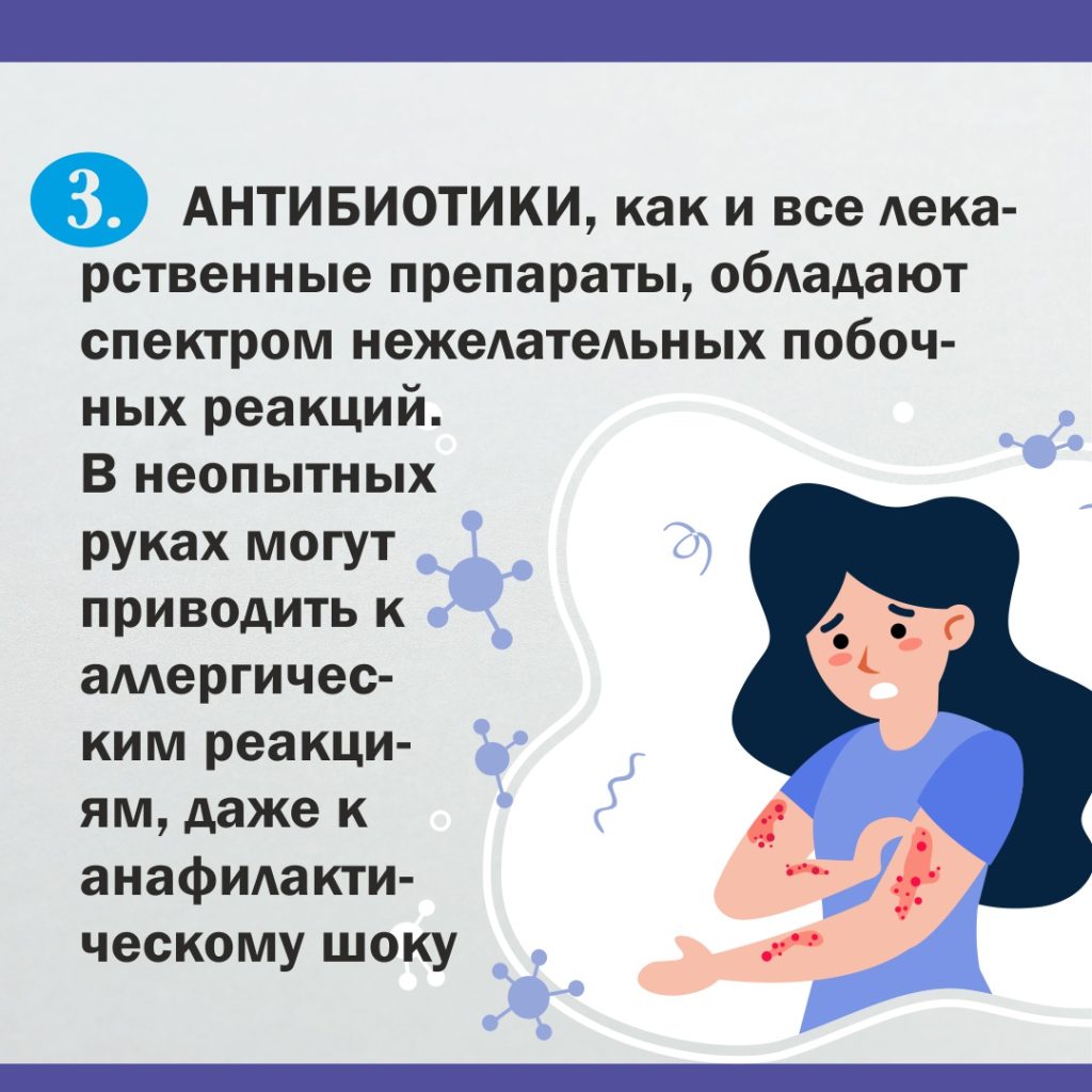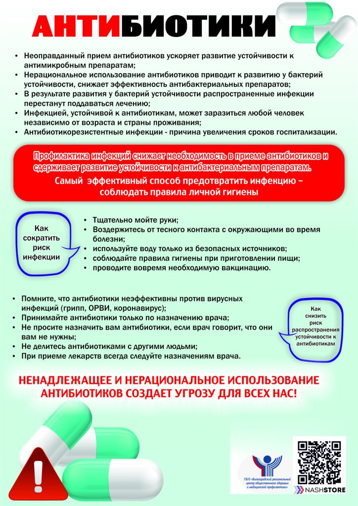 - Принимать антибиотики только по назначению врача, и не просить антибиотики, если, по словам медицинского работника, в них нет необходимости;