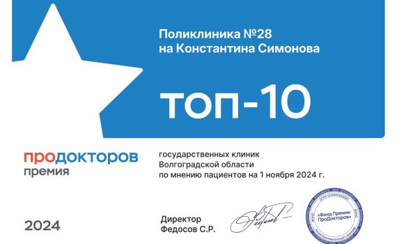 ⭐️ ГУЗ «Клиническая поликлиника №28» вошла в топ-10 лучших государственных клиник Волгоградской области⭐️ Ежегодно портал ПроДокторов награждает лучших врачей и клиники по отзывам пациентов. Лауреатов премии определили согласно народному рейтингу.…