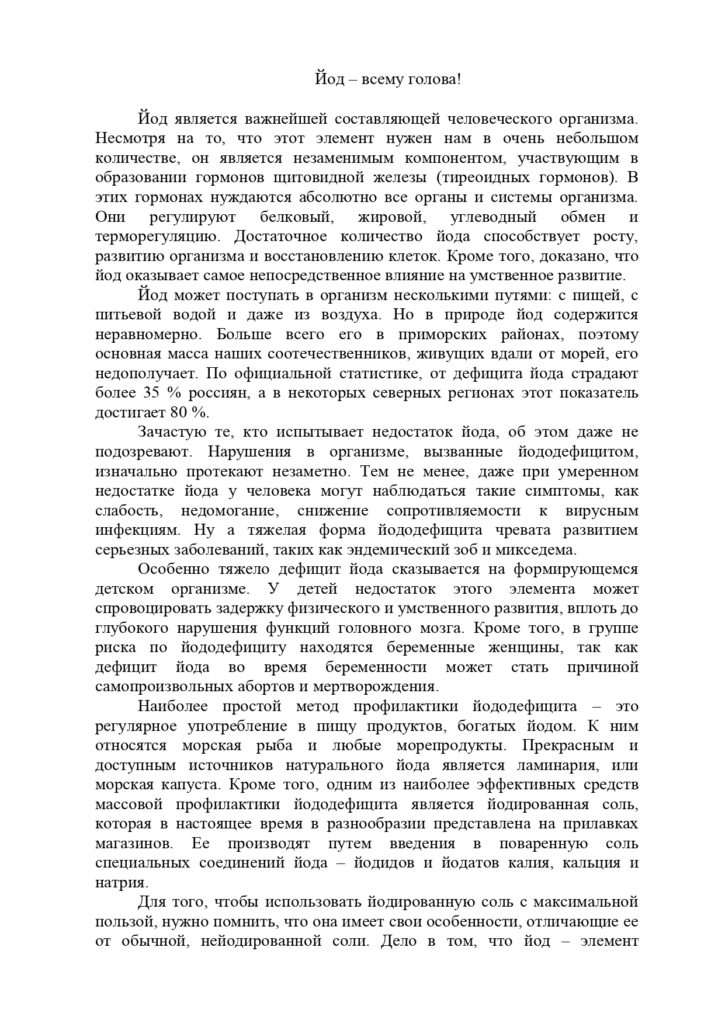 - Информационный материал “Йод – всему голова!”