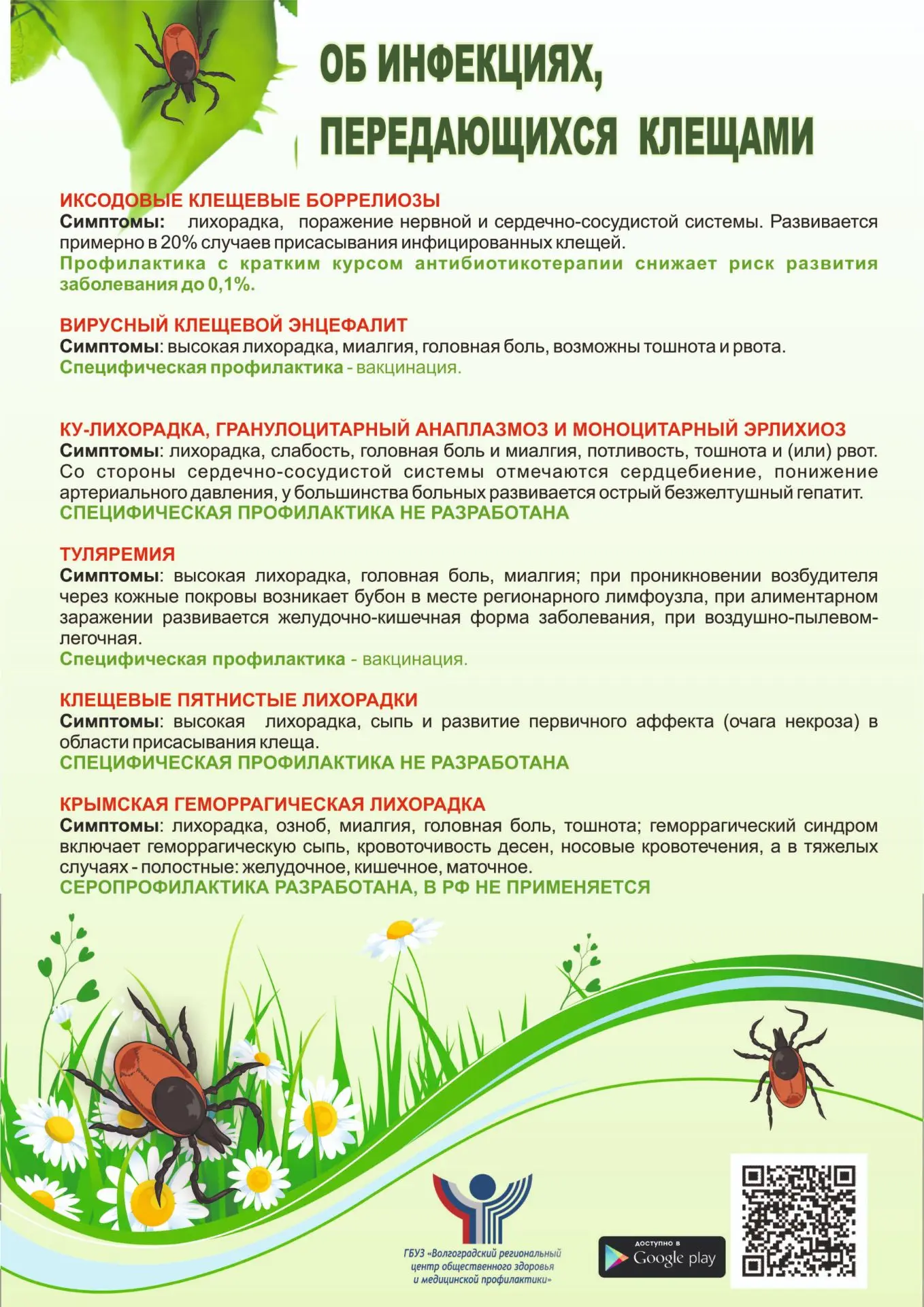 Каждую весну и почти до конца лета в Волгоградской области наблюдается сезон активности клещей, некоторые из которых несут смертельные болезни. В регионе ежегодно регистрируется заболевание Крымской геморрагической лихорадкой (КГЛ). Природный очаг КГЛ занимает большую часть территории области.