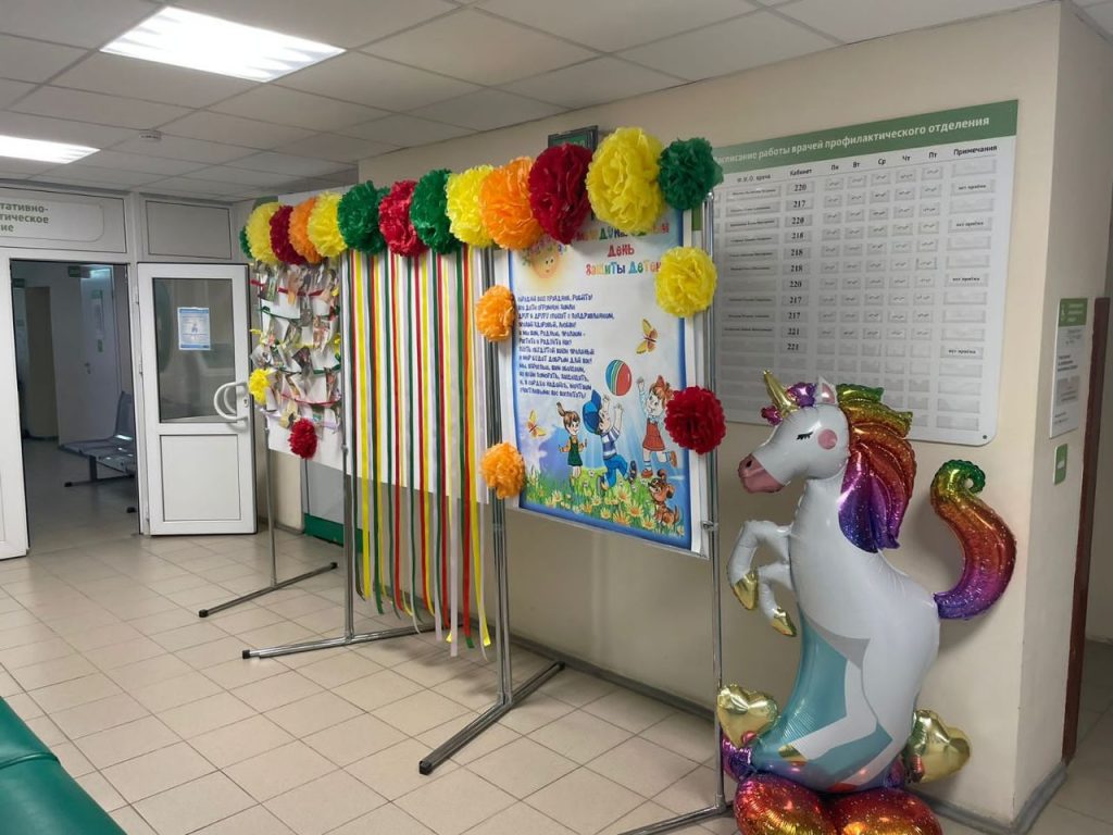 В холах детских отделений организованы фото зоны и выставки детских фотографий. Родители смогли сделать красочные фото своих любимых чад. Персонал детских отделений подарил каждому ребёнку по яркому шарику.