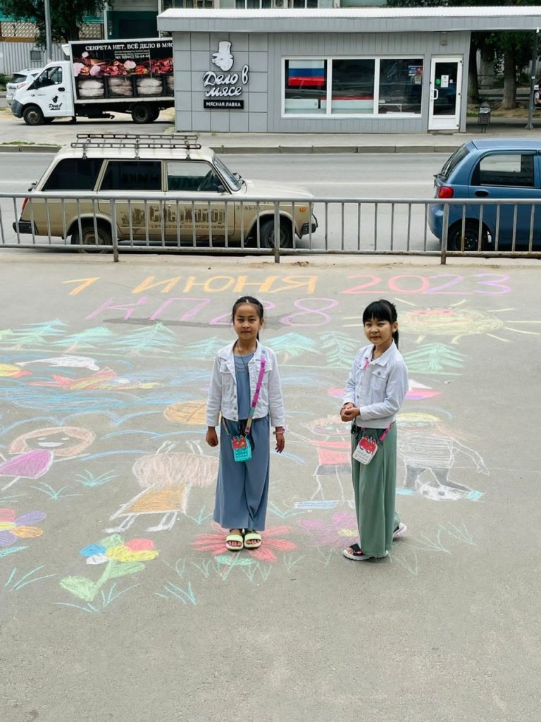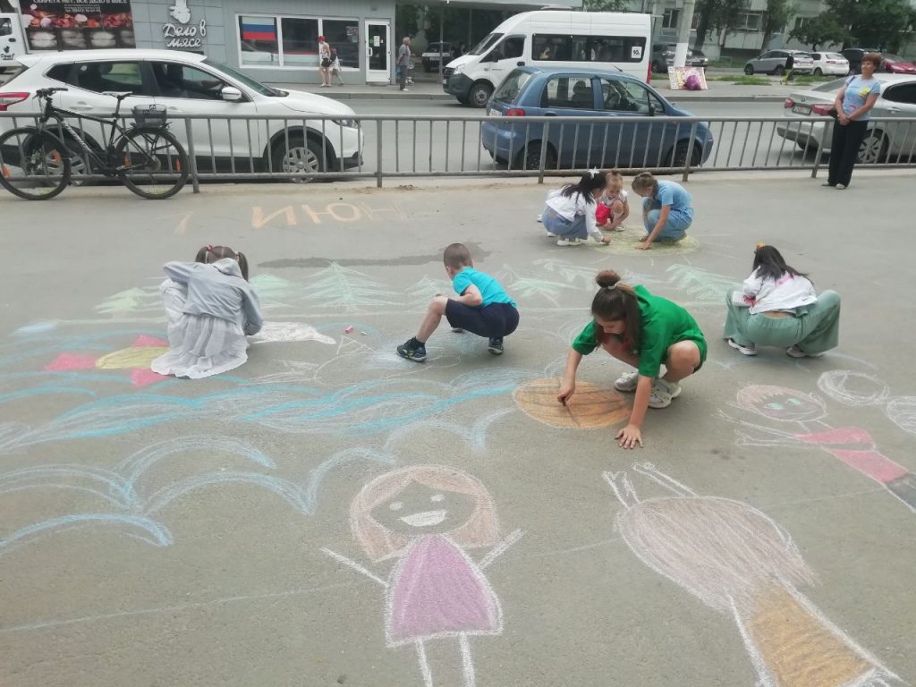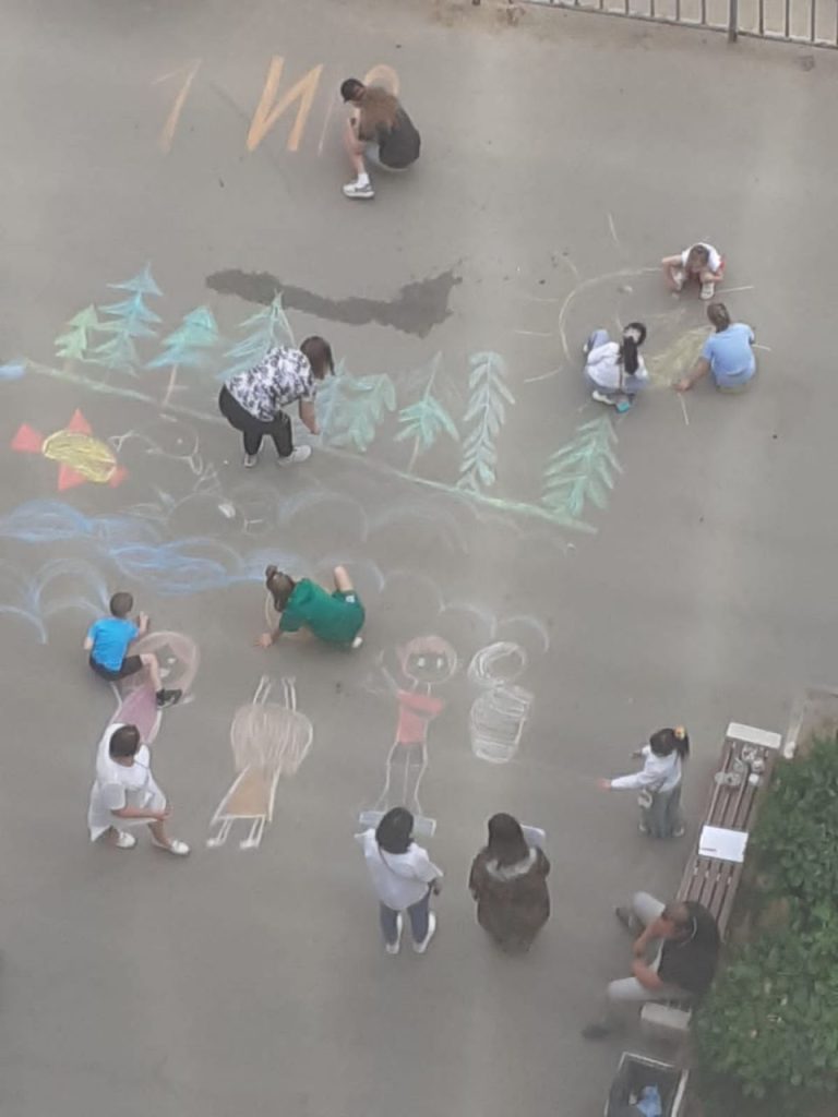 Перед центральным входом ГУЗ”КП №28″, желающие рисовать дети, смогли показать своё искусство рисования на асфальте.
