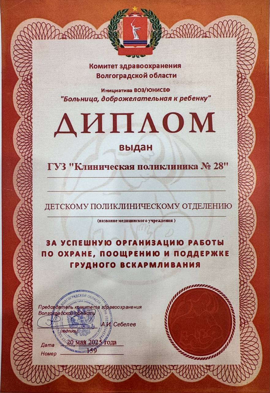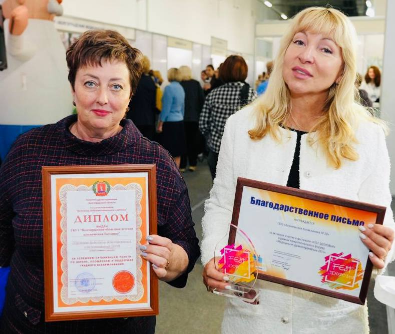 Диплома за успешную организацию работы по охране, поощрению и поддержке грудного вскармливания.