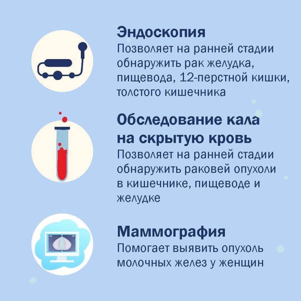 ☝️ Предлагаем ознакомиться с методами выявления онкологических заболеваний в наших карточках.