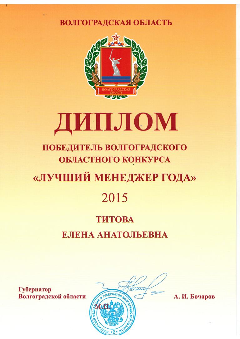 2015 г. — «Лучший менеджер года региона среди руководителей ЛПУ».